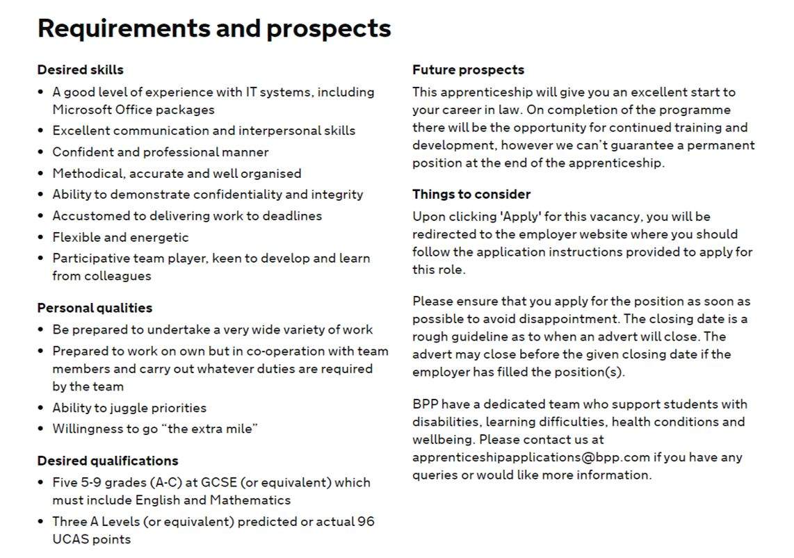 Now you know the difference between hard skills and soft. Let’s see if you have the right skills for the apprenticeship(s) you might want to do. But how do you know? The only way to write a winning application or to ace an interview is to write about or talk about the skills they are looking for. They will tell you about these things in their job advert and/or job description.